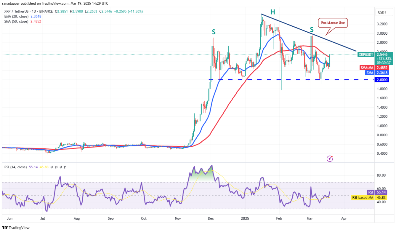 ! date-20-3-phan-analysisДневной график XRP/USDT | Источник: TradingView Если цена скорректируется от линии сопротивления, XRP/USDT может найти поддержку на 20-дневной EMA ($2,36). Если цена отскочит от этого уровня, вероятность пробоя линии сопротивления возрастает, подталкивая цену XRP к $3.