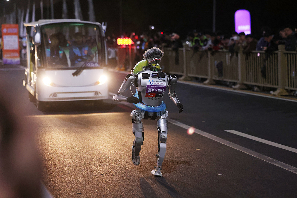 หุ่นยนต์ “Lightning” ของ Honor เร่งความเร็วในการแข่งขันทดสอบ แหล่งที่มา: CCTV News