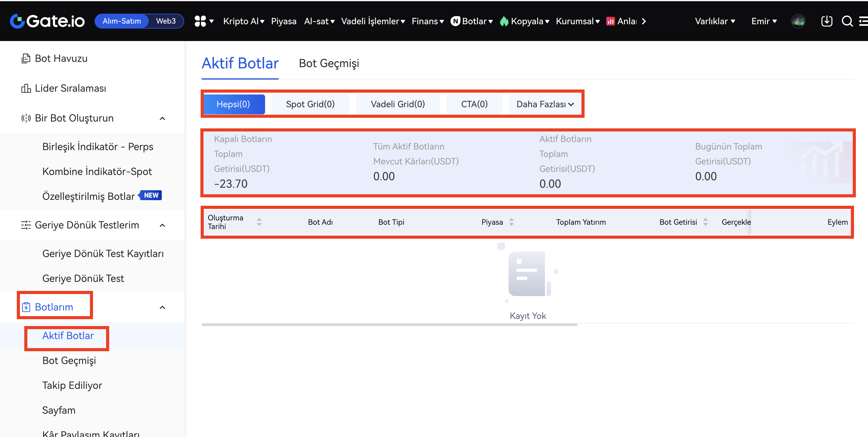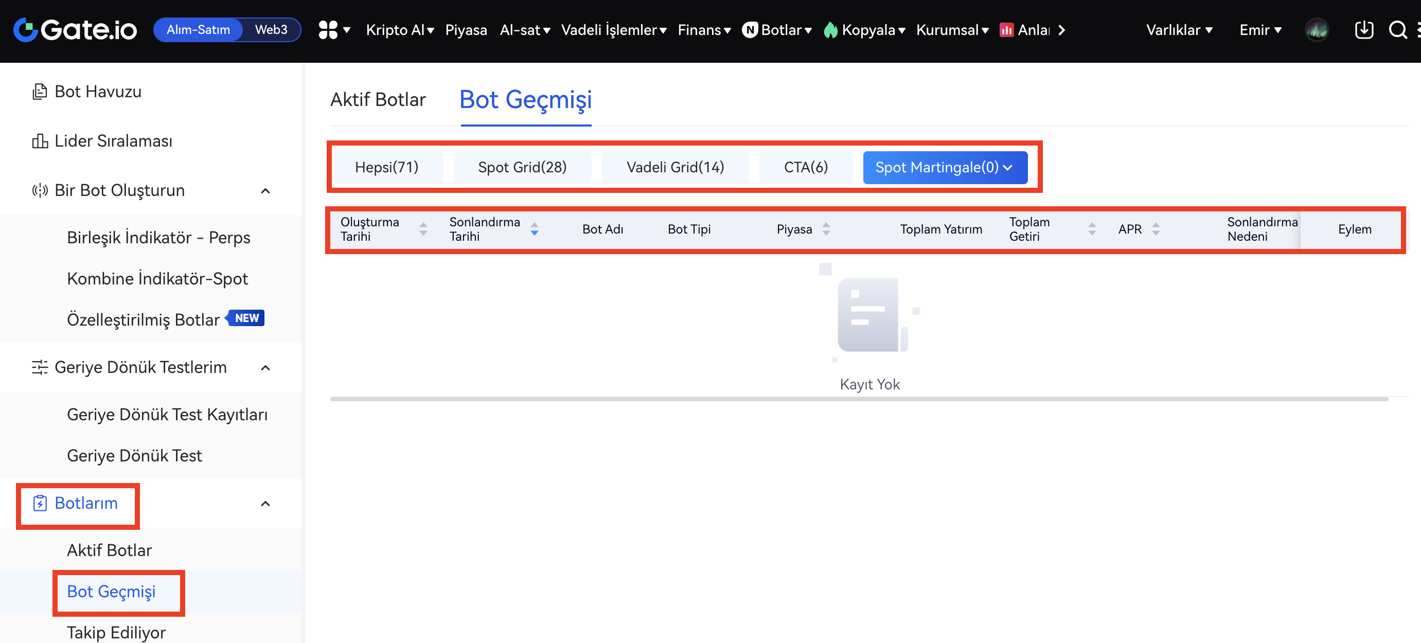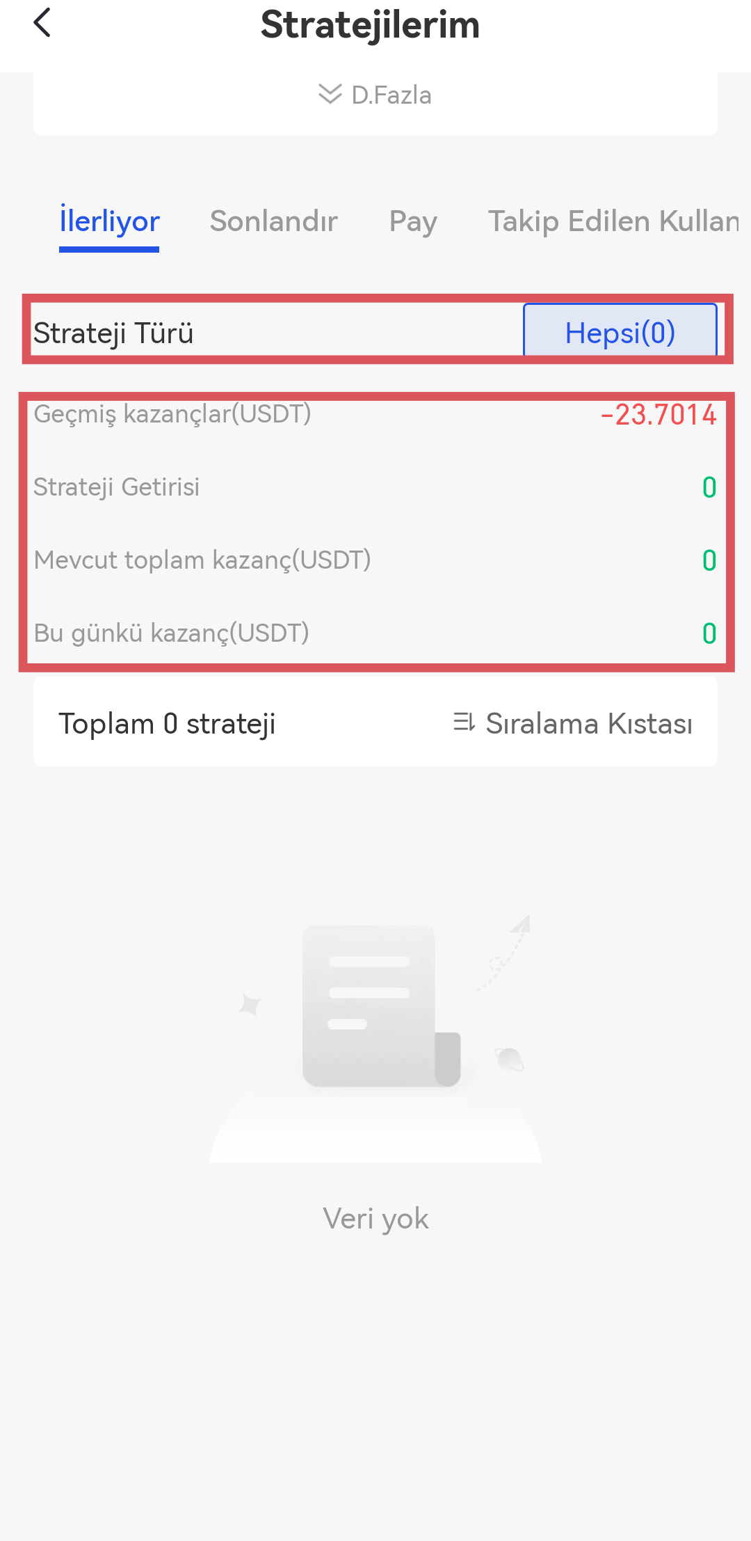Geçmiş stratejileri görüntülemek için "Stratejilerim"-"Geçmiş Stratejiler" bölümüne gidin.