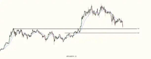I have been holding a bearish outlook recently. Two days ago, I mentioned that the 72K-66K level is approaching, and I will observe the rebound situation at that time to decide whether to enter a long position.