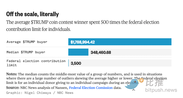 Dinner organizers determine eligibility for a seat by how many $TRUMP tokens they hold at a specific point in time. Nansen found that the “winners” had spent a total of $394 million on Trump’s official cryptocurrency, even though some of them had sold some or all of their positions after the contest ended. Of course, the difference in spending is huge: the top seven spent more than $10 million each, while the bottom 24 spent less than $100,000 each.