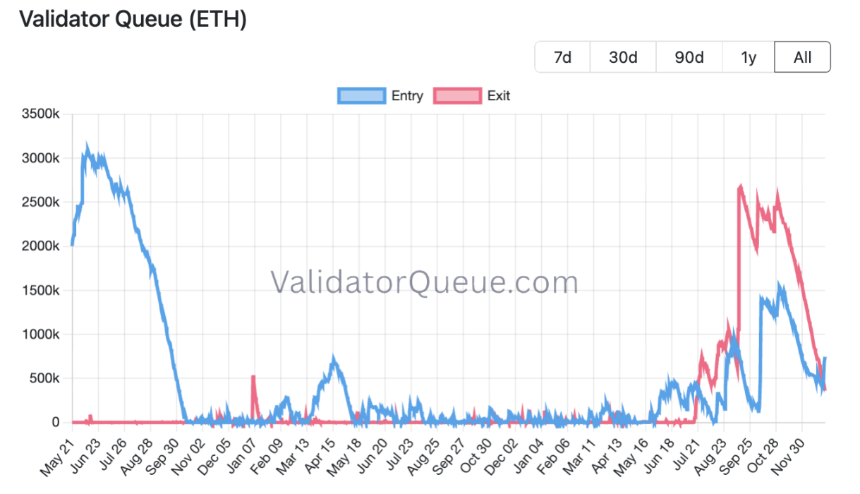 November: The “entry queue” grew again to over 1.5 million ETH, while the “exit queue” temporarily reached over 2.5 million ETH.