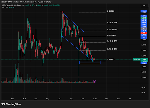 XRP now trades near $1.85 after its price broke support at $1.87 and exchange inflows increased.