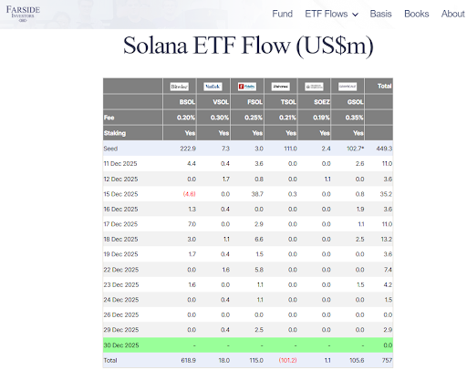 ETF demand stays steady despite price weakness on Solana | source: FarSide