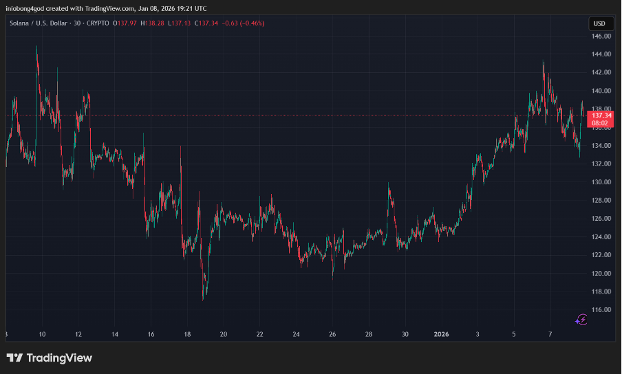 Solana Trades Sideways Near $135 as Key Levels Remain in Focus