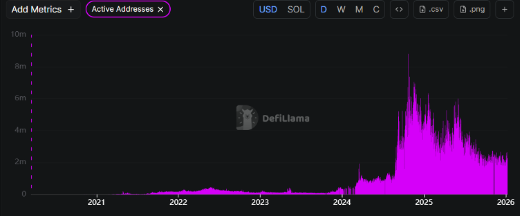 However, on-chain activity remains strong even as the price of SOL struggles to move higher. Reports indicate that Solana-based decentralised exchanges processed about $1.6 trillion in trading volume in the past year. This level of activity pushed Solana ahead of many major centralised venues by volume.