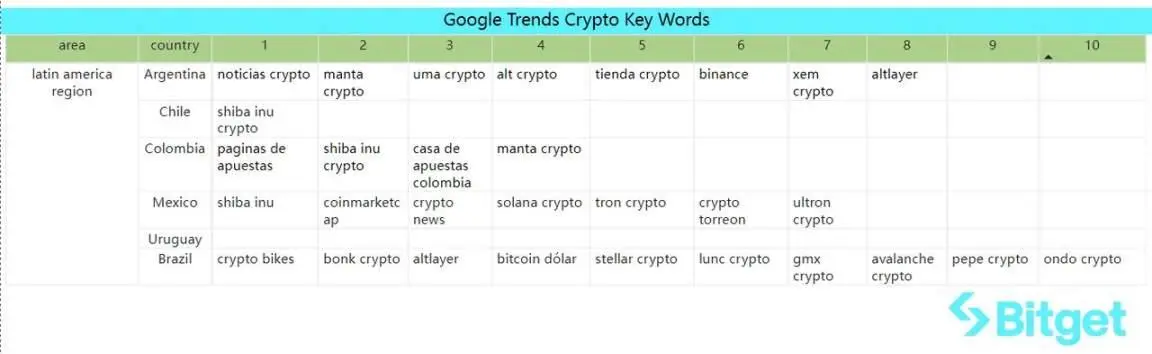 “Brazil” hot searches: bonk, altlayer, stellar, lunc, gmx;