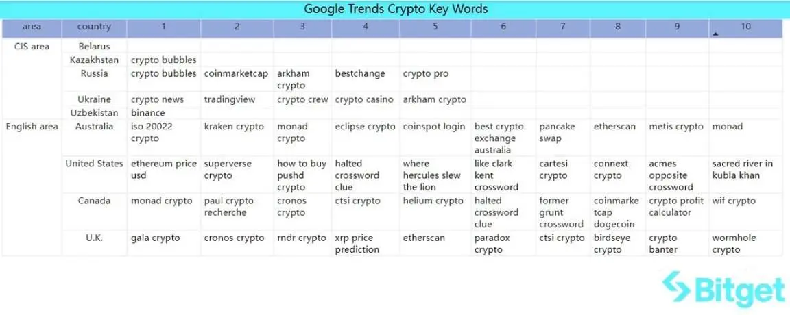 [CIS Area] Hot searches: crypto bubbles, coinmarketcap;