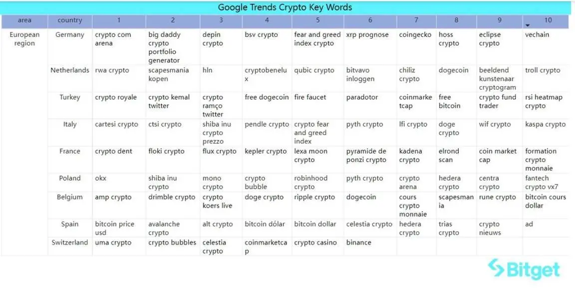 “Spain” hot searches: bitcoin, avalanch, alt, celestia;
