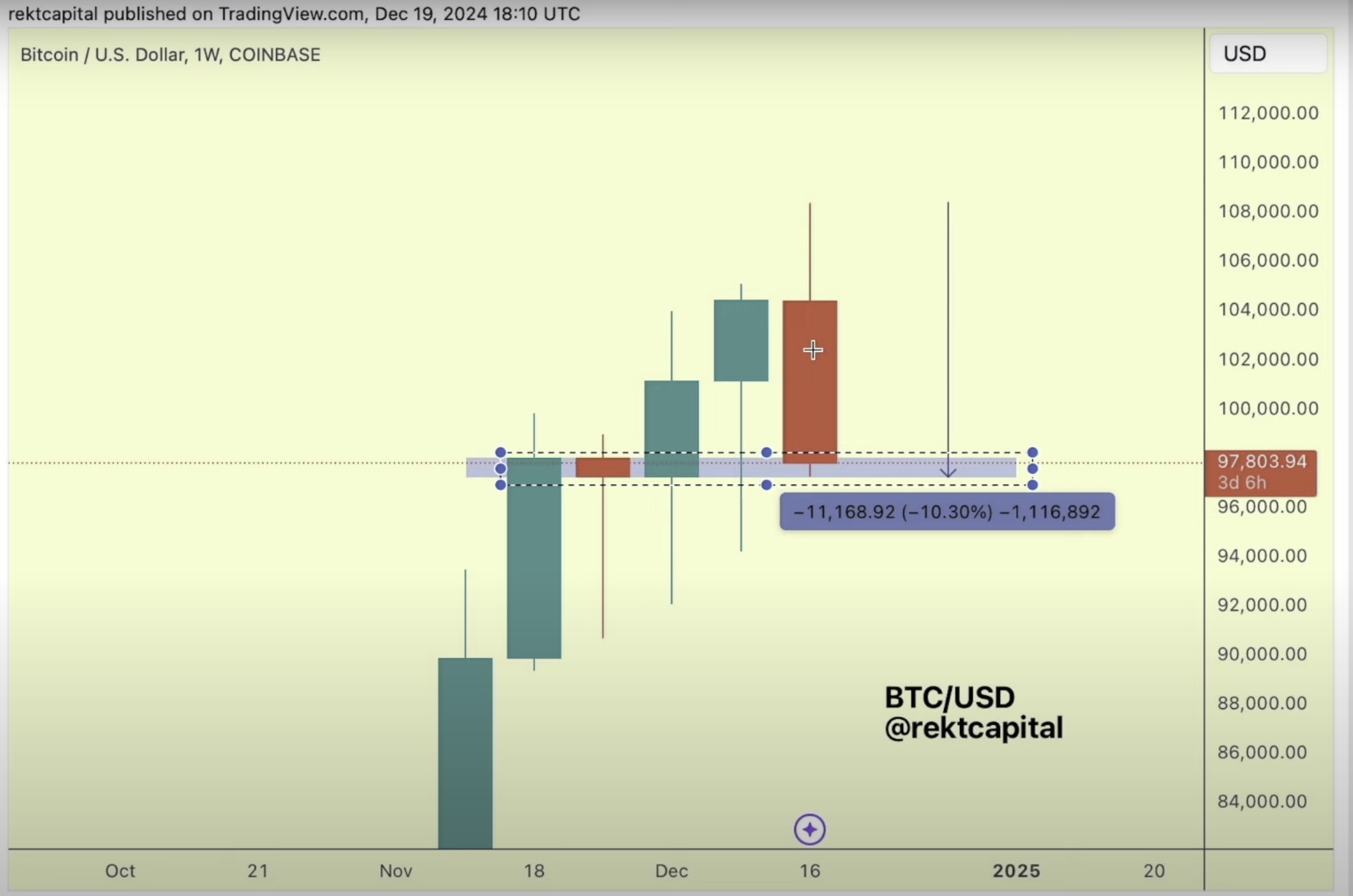Source: Rekt Capital/YouTubeBitcoin is trading for $97,158 at time of writing, down 3.4% in the last 24 hours.