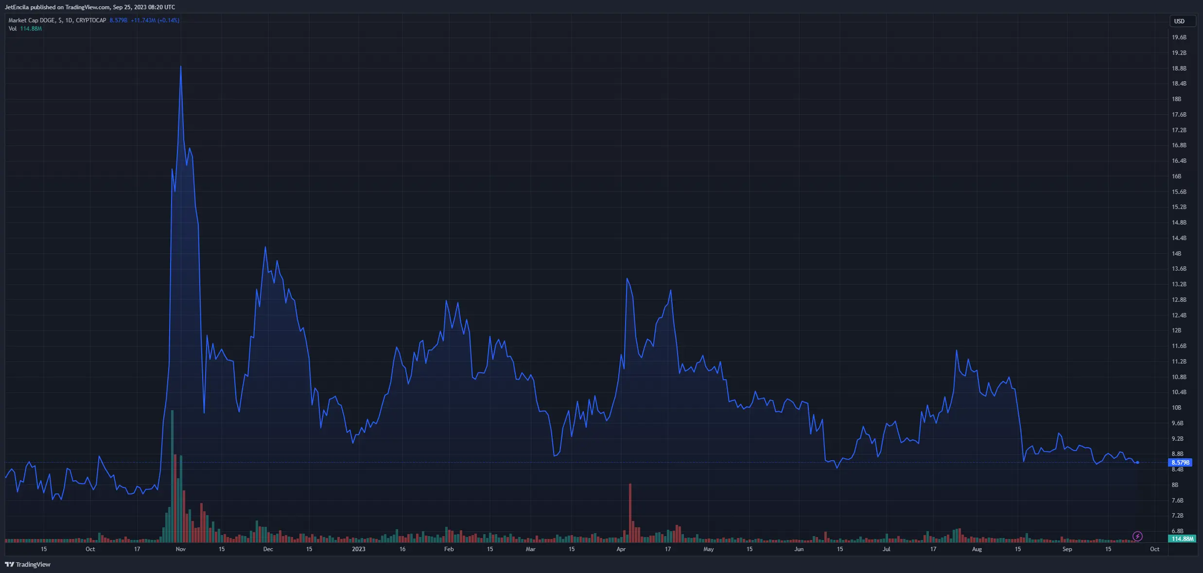 DOGE market cap currently at $8.5 billion. Chart: TradingView.com