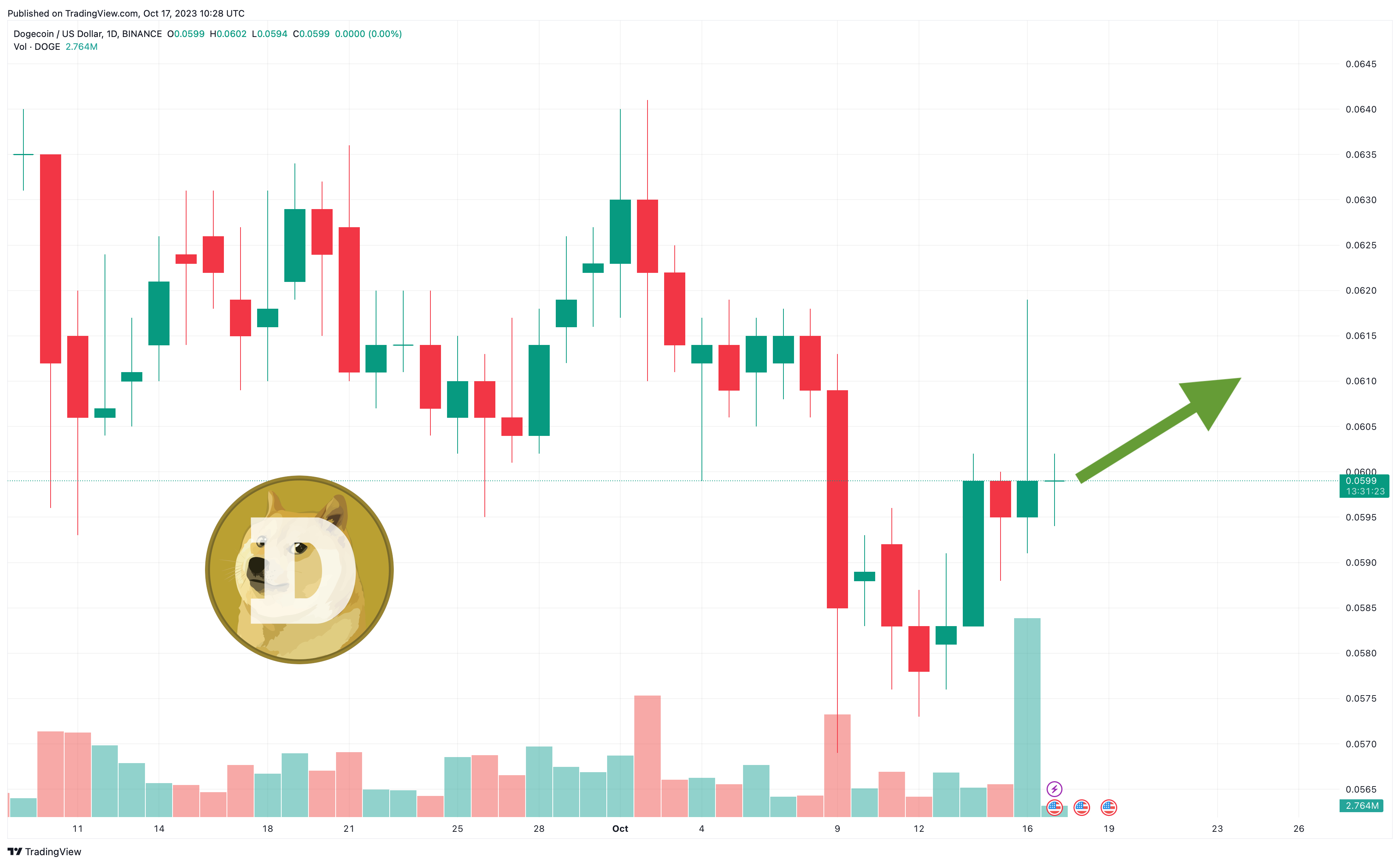 Source: TradingViewThe Dogecoin price has held to $0.060052 today, marking a 0% move in 24 hours and 1.5% gain in the past week.