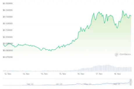 On average, the price of a newly listed coin on the Coinbase exchange tends to increase by over 80% within the first five days of its listing. Notably, Kaspa has had a growth of more than 60% since reaching a low of $0.0800 on November 13.