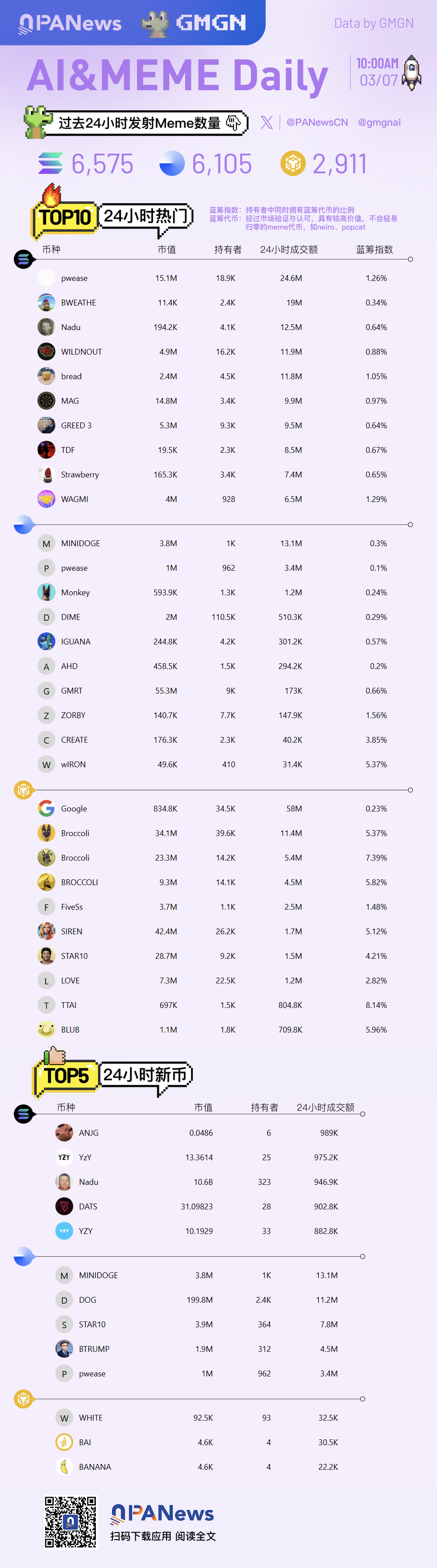 ⚠ Warning: PVP is high risk, be cautious and make sure to DYOR! Ai&Meme Daily, understand the past 24 hours hot Ai&Meme in one picture (2025.3.7)
