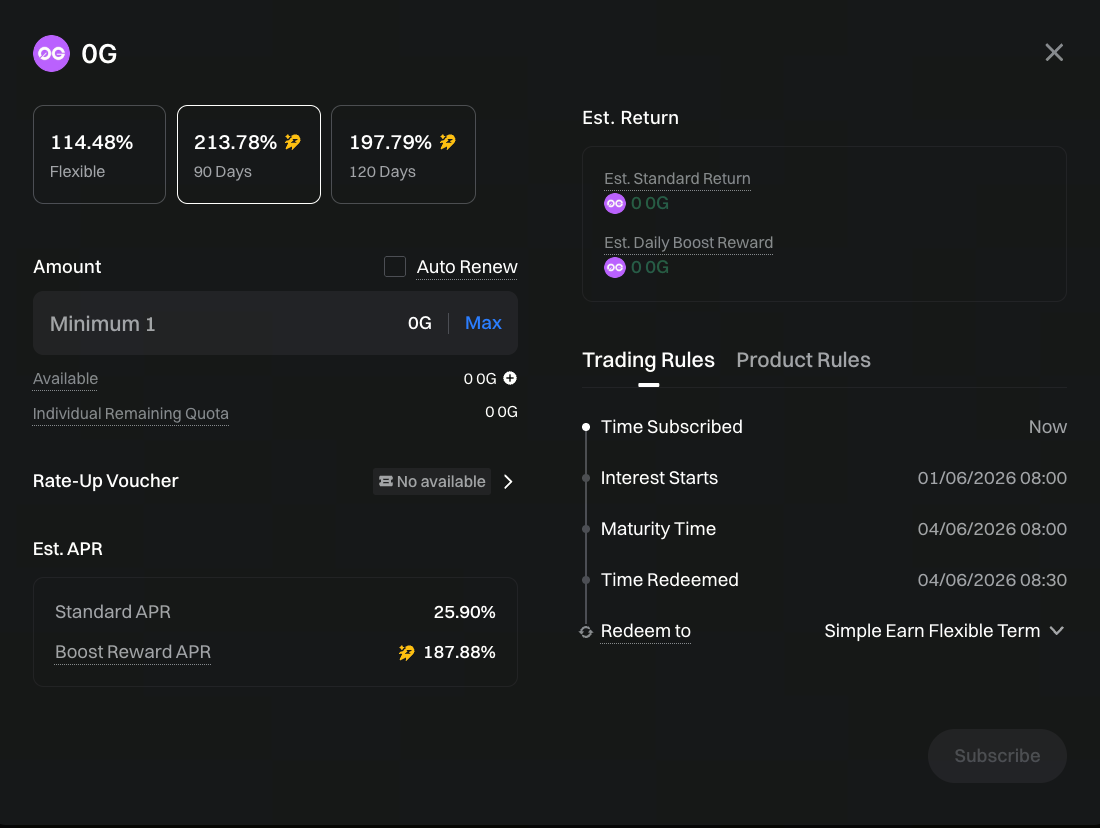 Упродовж дії програми всі підписки на фіксовані інвестиції у 0G, включаючи активи, придбані до старту програми, беруть участь у розподілі Boost-винагороди.