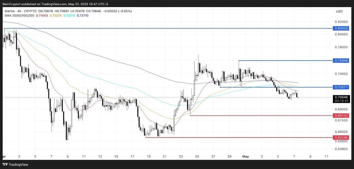 Оскільки Ethereum підвищує ліміти стейкінгу відповідно до EIP-7251, модульний дизайн Mantle та інтеграція повторно стейкованого ETH сприяють його здатності отримувати вигоду. Розширення блоб-простору може збільшити плату протоколу за дані, а також поліпшити ефективність валідатора. Проте технічні індикатори виглядають обережно.
