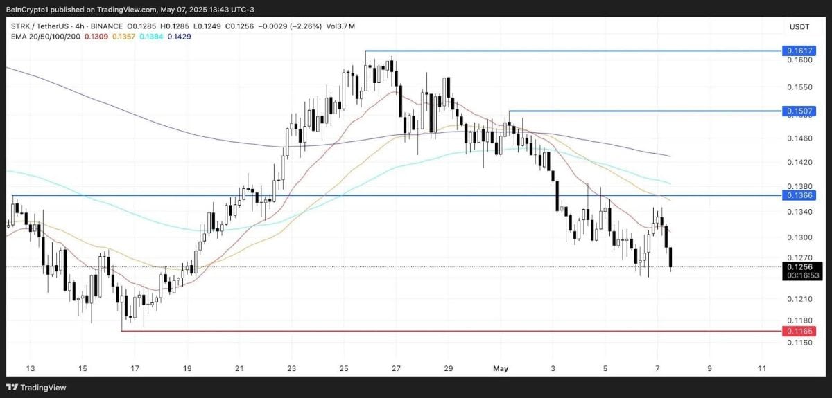 ! Джерело: TradingViewSTRK торгується навколо підтримки в 0,116 долара, і прорив нижче цього може підживити низхідний тренд. З іншого боку, якщо ми побачимо прорив повз опір в 0,136 долара, він може отримати зростання з рівнями опору на рівні 0,15 і 0,161 долара.