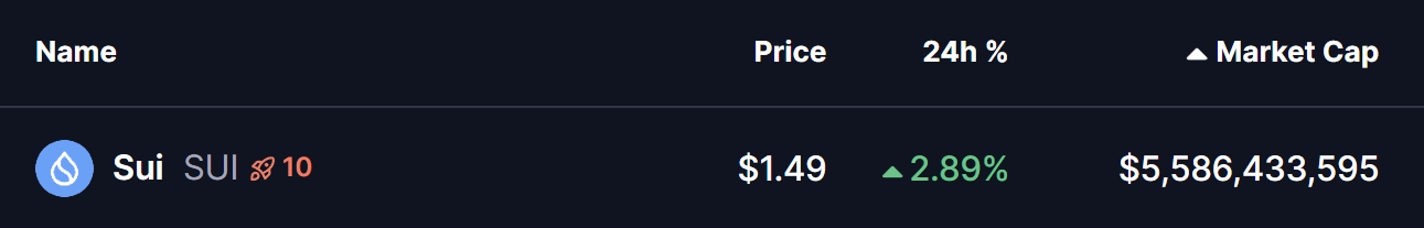 З моменту формування низу в точці C, SUI демонструє стабільну поведінку відновлення і наразі торгується біля рівня $1.49. Це відскок підкреслює зменшення ведмежого імпульсу і зростання довіри покупців за нижчими цінами.