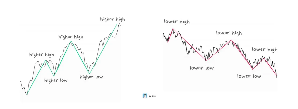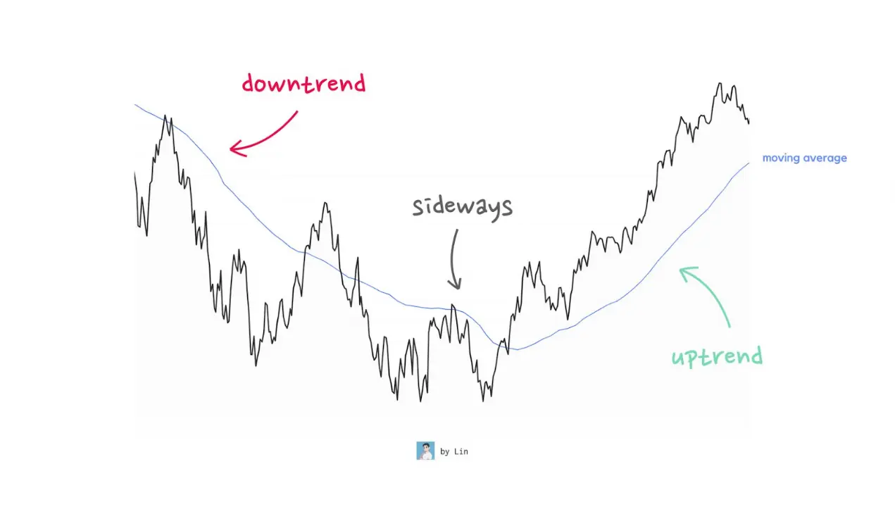 Щоб визначити ці тренди, можна використовувати прості інструменти, наприклад, трендові лінії або ковзні середні, щоб допомогти визначити загальний напрямок.
