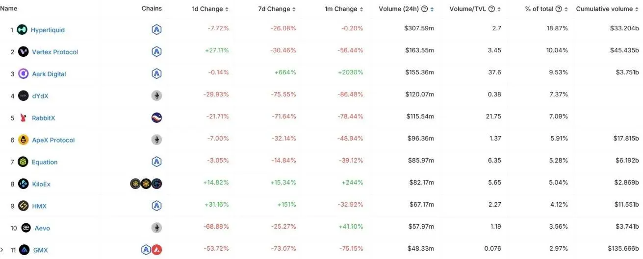 Завдяки вищезазначеній конструкції Aevo може досягти ефективного узгодження та недорогих мережевих контрактів і опціонних транзакцій, тому Aevo успішно зайняла місце в торгівлі деривативами. Дані веб-сайту показують, що 22 січня обсяг торгів контрактами ETH досяг 34,1 мільйона доларів США, обсяг торгів контрактами BTC досяг 16,2 мільйона доларів США, а загальний обсяг торгів деривативами становив 57,9 мільйона доларів США, що є десятим місцем на всій платформі, вище, ніж GMX у США. 48,3 мільйона доларів, що нижче, ніж у HMX 67,1 мільйона доларів.