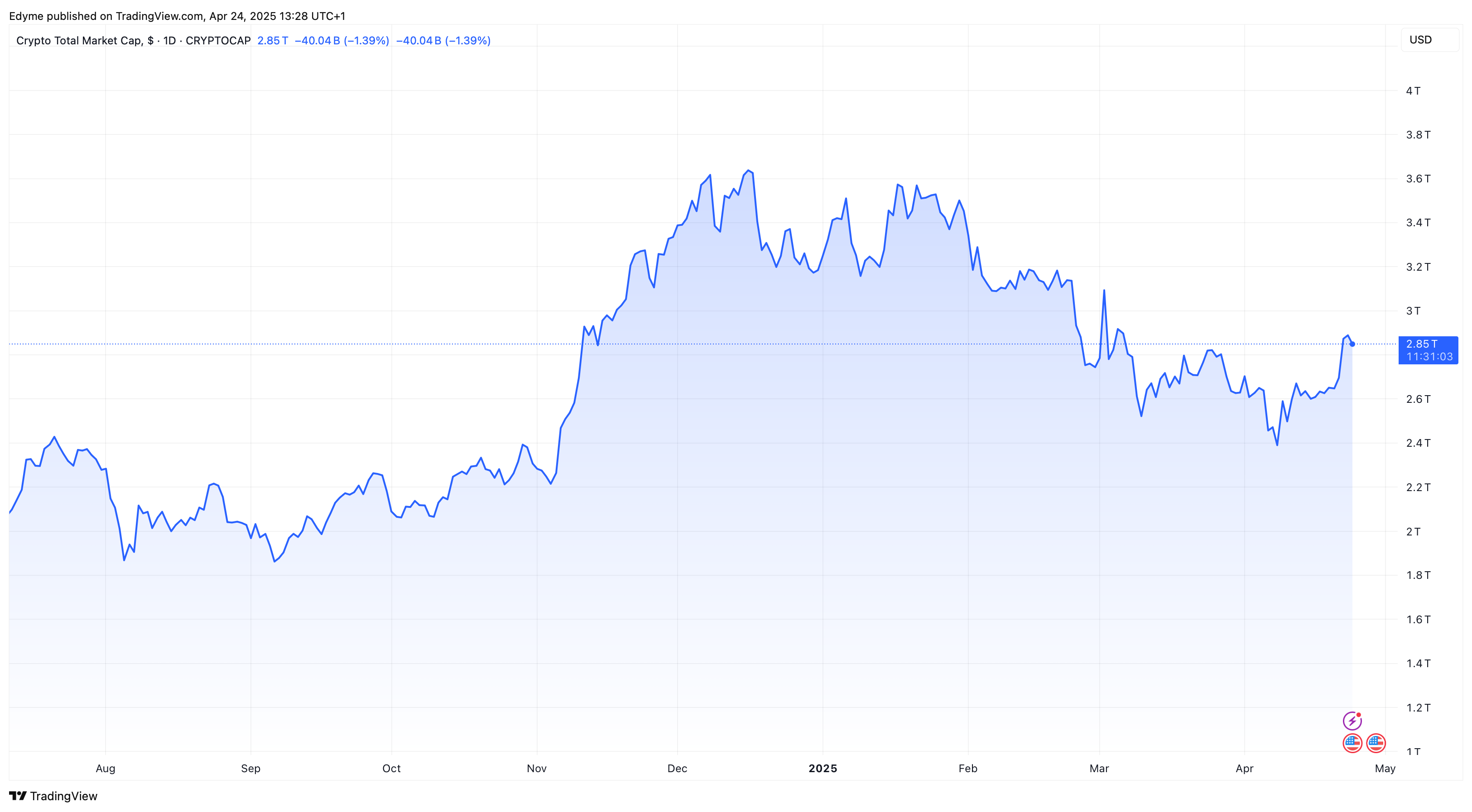 ! Vốn hóa thị trường tiền điện tử toàn cầu trên TradingView trong bối cảnh CelsiusĐịnh giá vốn hóa thị trường tiền kỹ thuật số toàn cầu. | Nguồn: TradingView.comHình ảnh nổi bật được tạo bằng DALL-E, Biểu đồ từ TradingView