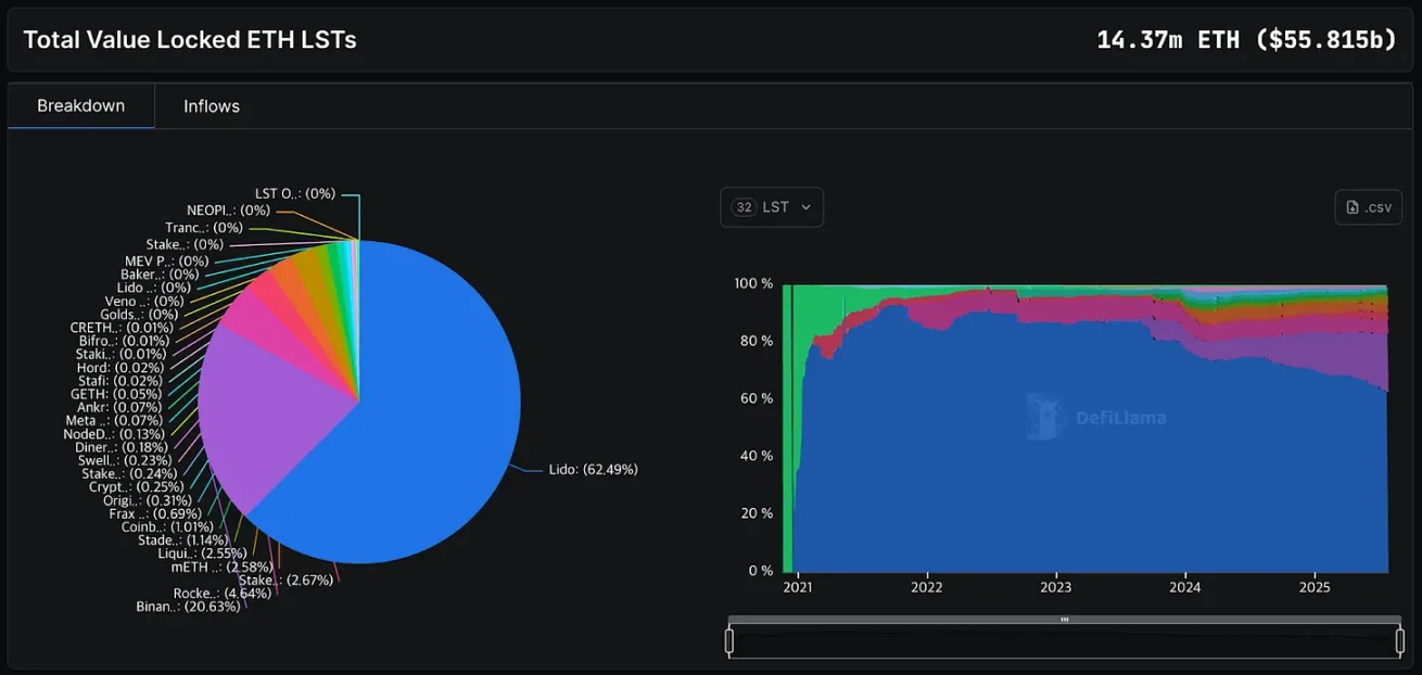Điều này tương phản rõ rệt với Ethereum, nơi có một lượng lớn ETH được triển khai tích cực vào DeFi và staking. Ví dụ, các giao thức staking thanh khoản trên Ethereum đã khóa hơn 14,37 triệu ETH (khoảng 56 tỷ USD), chuyển đổi ETH thành tài sản sinh lãi và thúc đẩy một nền kinh tế trên chuỗi sôi động.