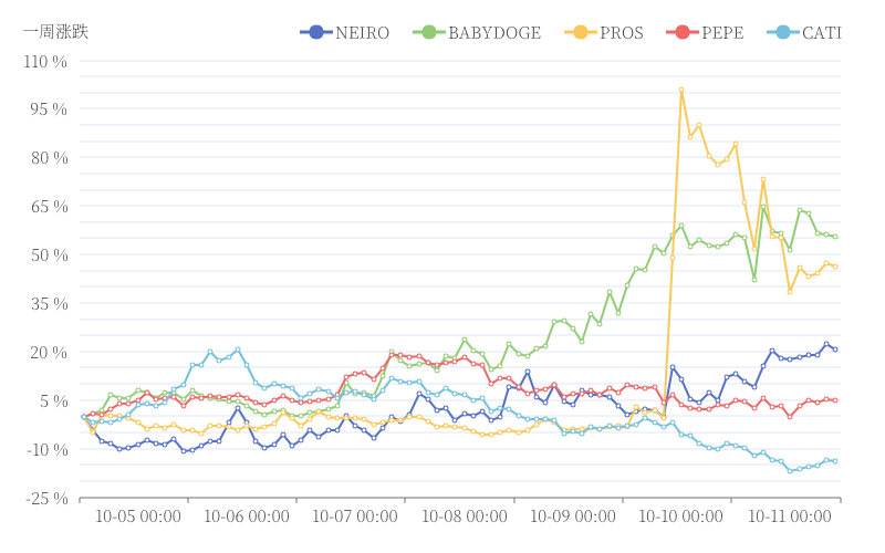 Một thông báo của Musk đã gây ra một cơn bơm lớn cho meme coin. Dữ liệu cho thấy, vào ngày 10 tháng 10, giá trị meme coin đã tăng hơn 15%, với NEIRO là đồng tiền dẫn đầu, tăng đến 32,45% và đạt mức cao nhất trong ngày là 0,07660 đô la.