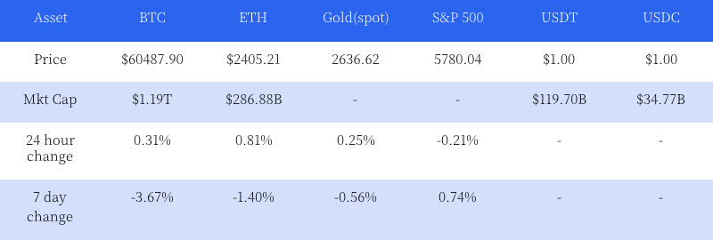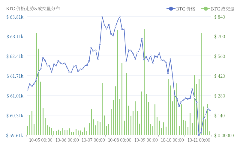 Tuần này, Tiền kỹ thuật số tổng vốn hóa thị trường đạt $2.11 nghìn tỷ, giảm 0.53% so với tuần trước. Khối lượng giao dịch sàn giao dịchtăng lên 0.97%, đạt $68.36 tỷ. Giá BTC giảm 2.80% xuống $60,619.40, tâm lý bán ra của người giao dịch khá mạnh. Tâm lý thị trường tổng thể khá thận trọng, đang chờ đợi thông tin CPI được công bố.