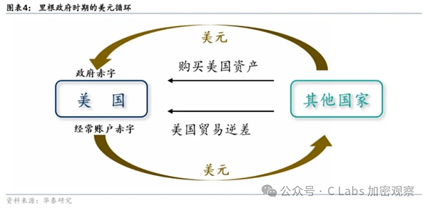 Do đó, logic chính của kỷ nguyên này là: phân chia ngành công nghiệp của Mỹ cho các nước nhỏ trên toàn thế giới, sau đó Chính phủ Mỹ phát hành trái phiếu tiền tệ để in tiền và mua hàng hóa và dịch vụ từ các nước nhỏ trên toàn thế giới.