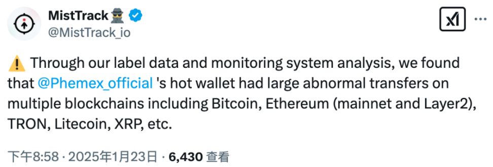 Vào ngày 23/1/2025, ví nóng của sàn giao dịch tiền điện tử Phemex có trụ sở tại Singapore đã bị tấn công, dẫn đến thiệt hại khoảng 70 triệu USD. Federico Variola, Giám đốc điều hành của Phemex, cho biết trên nền tảng X: “Xin chào tất cả mọi người, chúng tôi đang điều tra một báo cáo về ví nóng và yên tâm rằng ví lạnh vẫn an toàn và có thể được kiểm tra bởi bất kỳ ai. Chúng tôi sẽ mang đến nhiều bản cập nhật sớm nhất có thể”.
