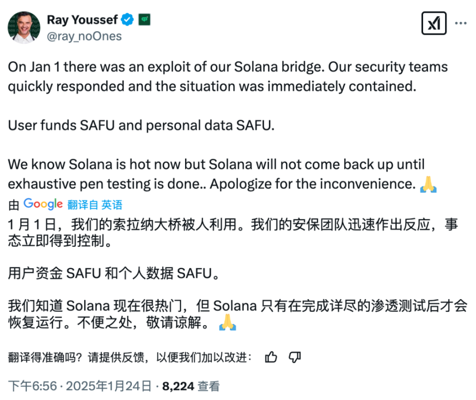 Vào ngày 1 tháng 1 năm 2025, nền tảng giao dịch P2P NoOnes đã bị tấn công và các ví nóng của nó đã chứng kiến hàng trăm giao dịch gửi đi đáng ngờ trên Ethereum, Tron, Solana và BSC, dẫn đến thiệt hại khoảng 7,2 triệu đô la. Giám đốc điều hành Ray Youssef giải thích rằng nguyên nhân của vụ việc là do khai thác cầu Solana.