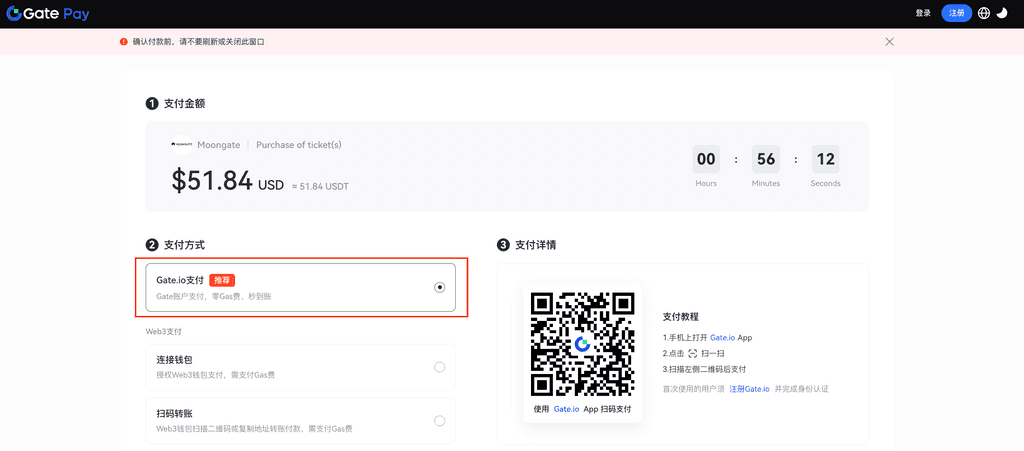 5.Có thể chọn sử dụng ứng dụng Gate để quét mã thanh toán hoặc ví Web3 để thực hiện thanh toán trên chuỗi.