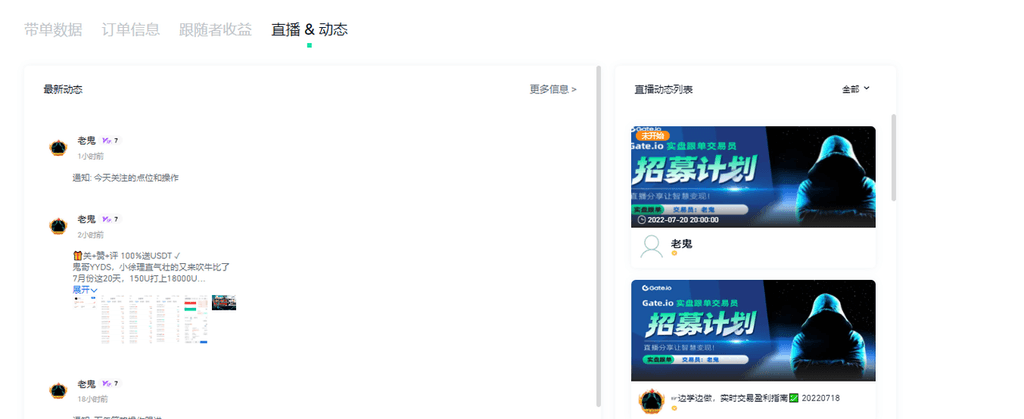 溫馨提示:帶單者積極發佈動態圈及直播動態利於與跟單者的信息同步及個人曝光也是彼此建立信任的途徑之一