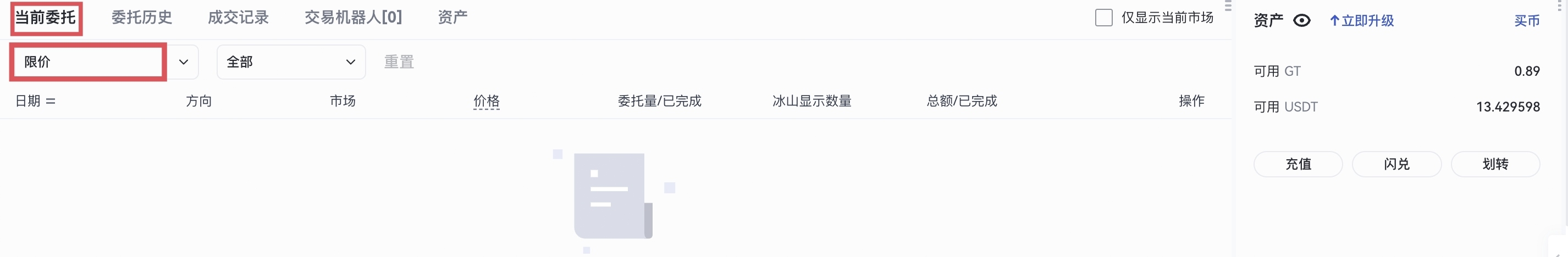 - 下單後立即全部成交或者是開啓了下單即撤功能,可以從限價歷史委托裏查看成交記錄。