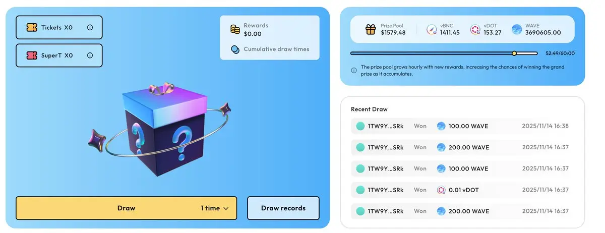• 票券機制: 系統設計便於參與:每 10 枚 $bbBNC 可換取 1 張票券。此外,累計 100 次常規轉盤的用戶即可進入 Super T 池,這裡聚集了一群積極爭奪最高獎勵的「鐵粉」。