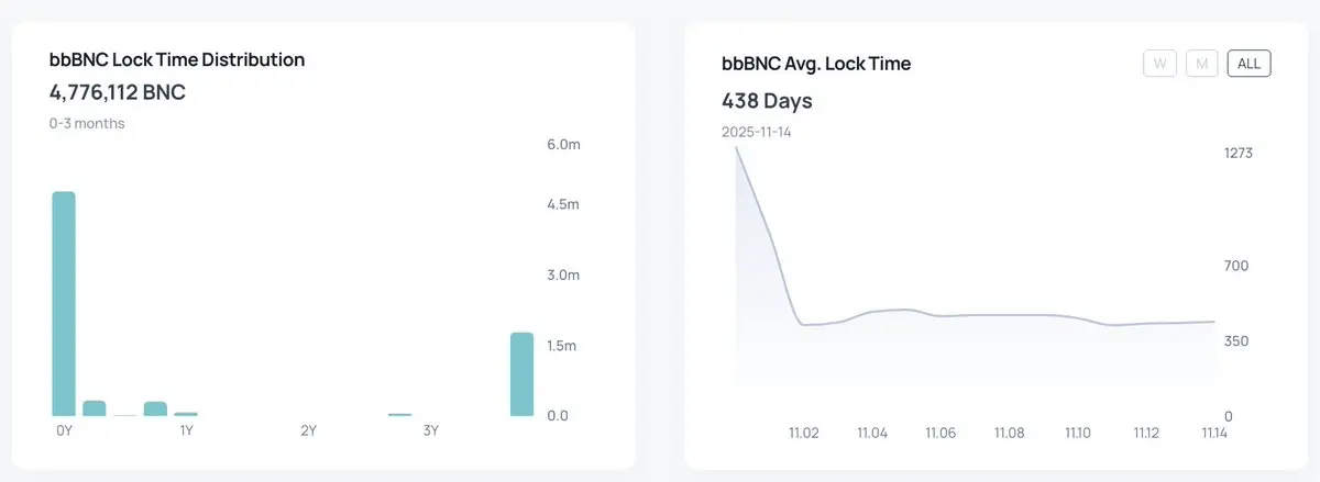 • 相當一部分 $bbBNC 持有者選擇了較短的鎖倉期,通常為 0–3 個月。這滿足了尋求靈活性與資金快速調配用戶的需求。