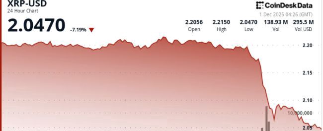 資料來源:CryptoNewsNet 原標題:XRP下滑7%,技術性突破開啓向$1.80的移動 原始連結: XRP暴跌7%,至$2.05,因一波猛烈的機構拋售突破了關鍵支撐位,壓倒了強勁的ETF流入,迫使該代幣回到11月的修正區間。