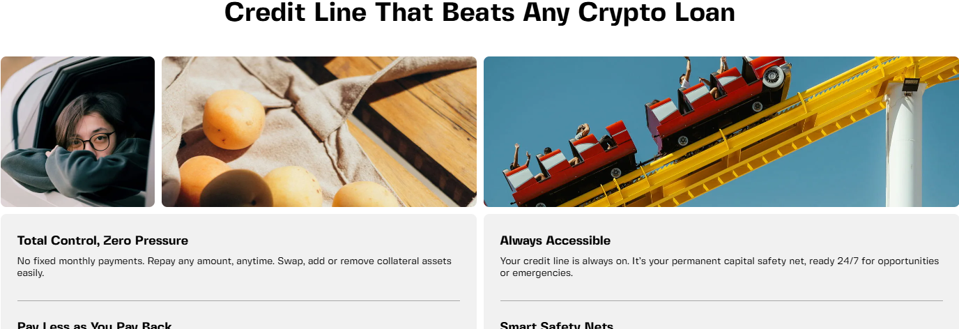 備用加密貨幣信用額度是此模型更簡單的實現之一。其信用額度結合了低借款成本、靈活使用和無手續費的存款結構,使其適合那些希望控制而非嚴格貸款條款的用戶。