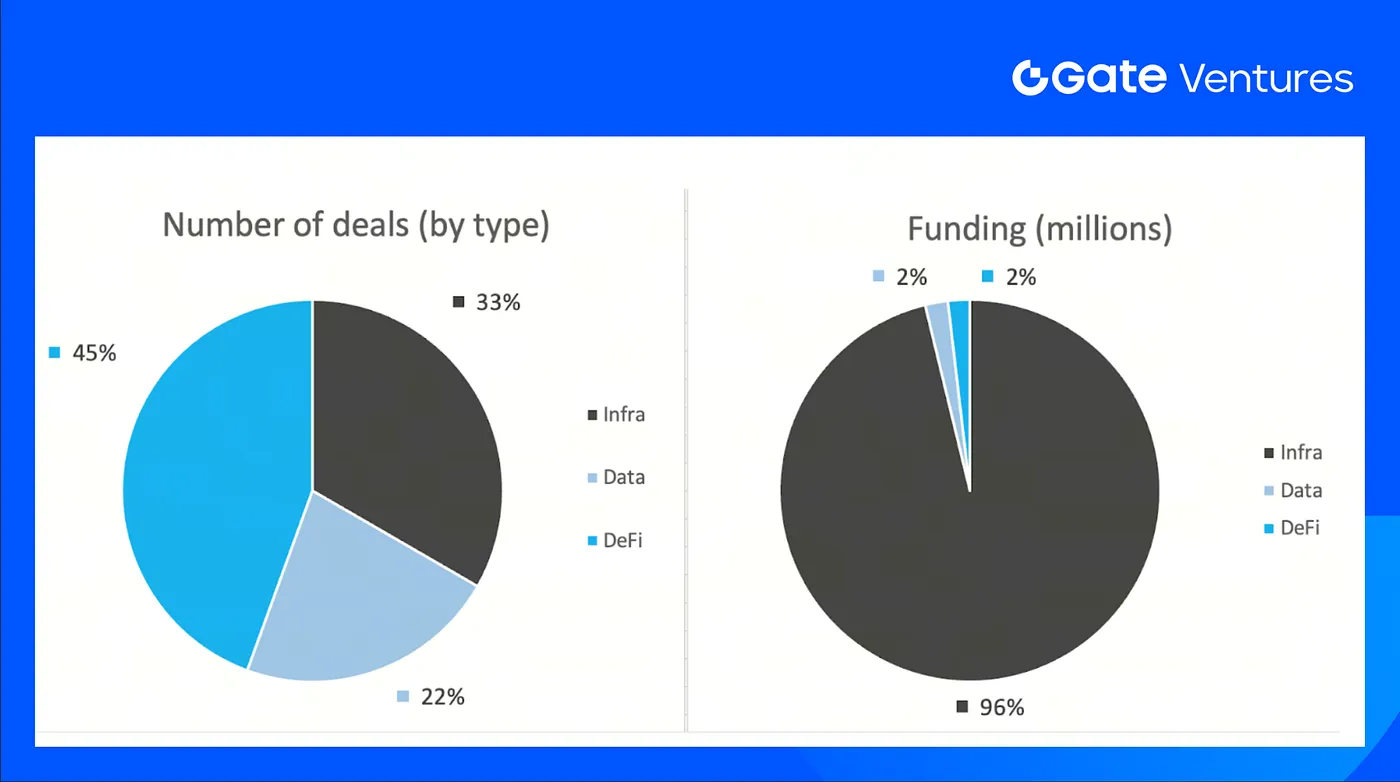 The number of deals closed in the previous week was 9, with DeFi having 4 deals, representing 44% of the total number of deals. Meanwhile, Infra had 3 (33%), and Data had 2 (22%).