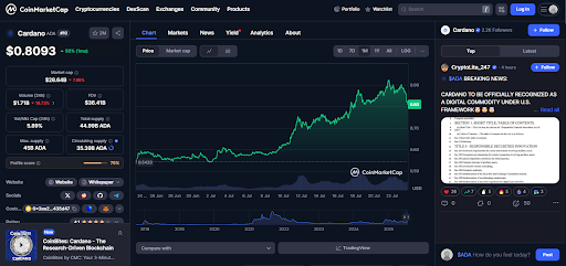 ADA最近保持在$0.90以上,市值接近$30.78亿,而SOL突破了$200,达到$1070亿的估值——这些数字使得任何专注于逆转Solana主导地位的Cardano价格预测更加明确。