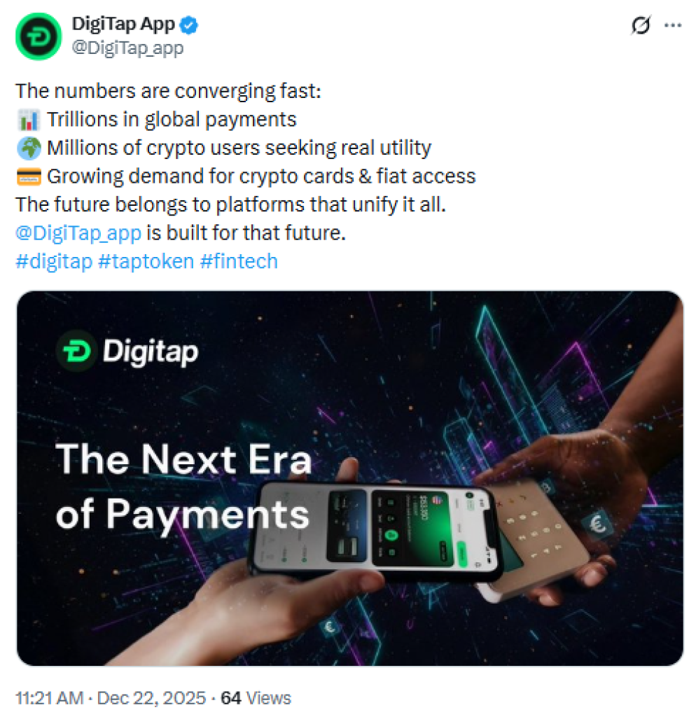这类叙事使Digitap成为值得购买的加密货币。当市场一片红色、没有复苏迹象时,投资者不再追逐幻想,而是寻找能带来实际使用、即使在市场下行时也能扩展的项目。Digitap专注于实用金融,符合这种防御型特征。