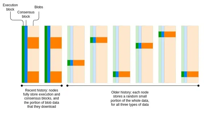 如今,以太坊已经开始摆脱所有节点永久存储所有历史的模型。共识区块(即与权益证明共识相关的部分)仅存储约 6 个月。Blob 仅存储约 18 天。EIP-4444 旨在为历史区块和收据引入一年的存储期。长期目标是建立一个统一的时期(可能约为 18 天),在此期间每个节点负责存储所有内容,然后建立一个由以太坊节点组成的点对点网络,将旧数据存储在分布式网络方式。