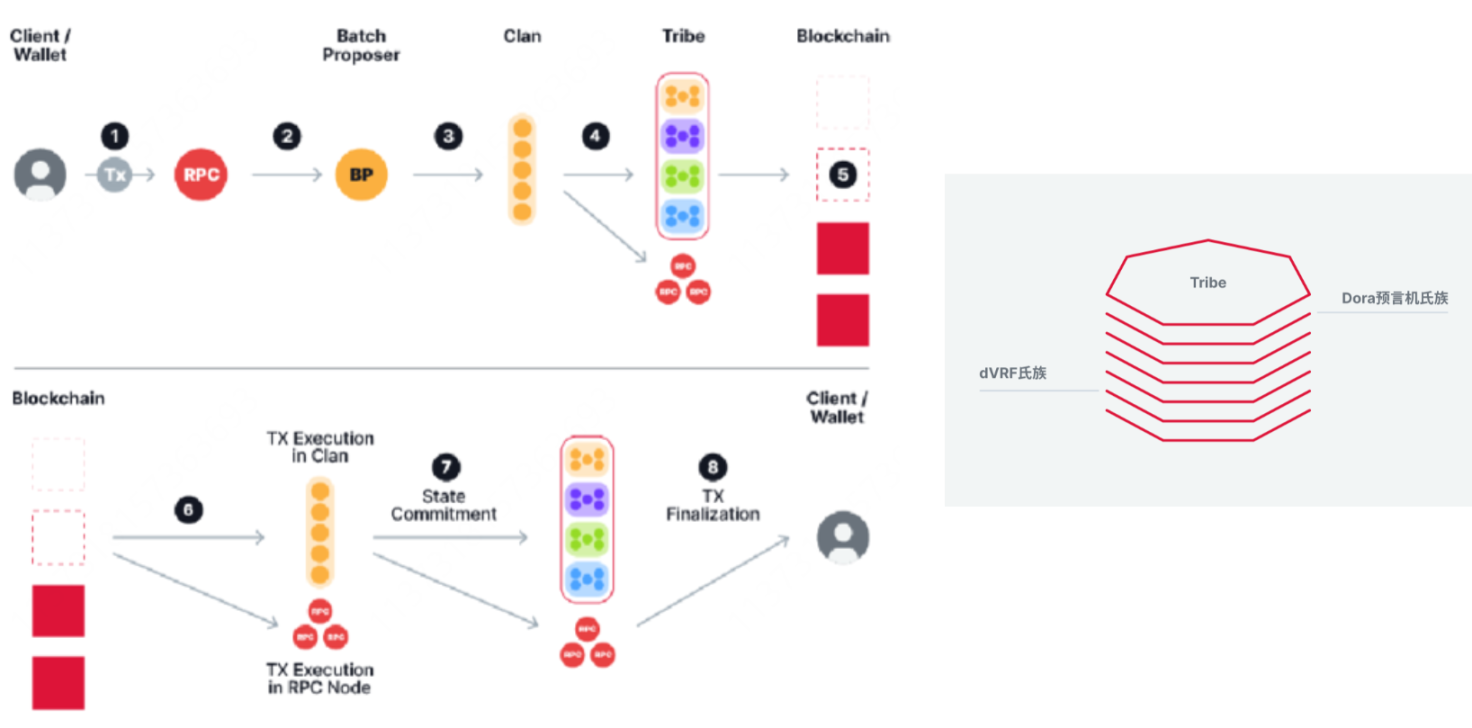 左:Supra 中的用户交易流 右:「部落 - 氏族」架构