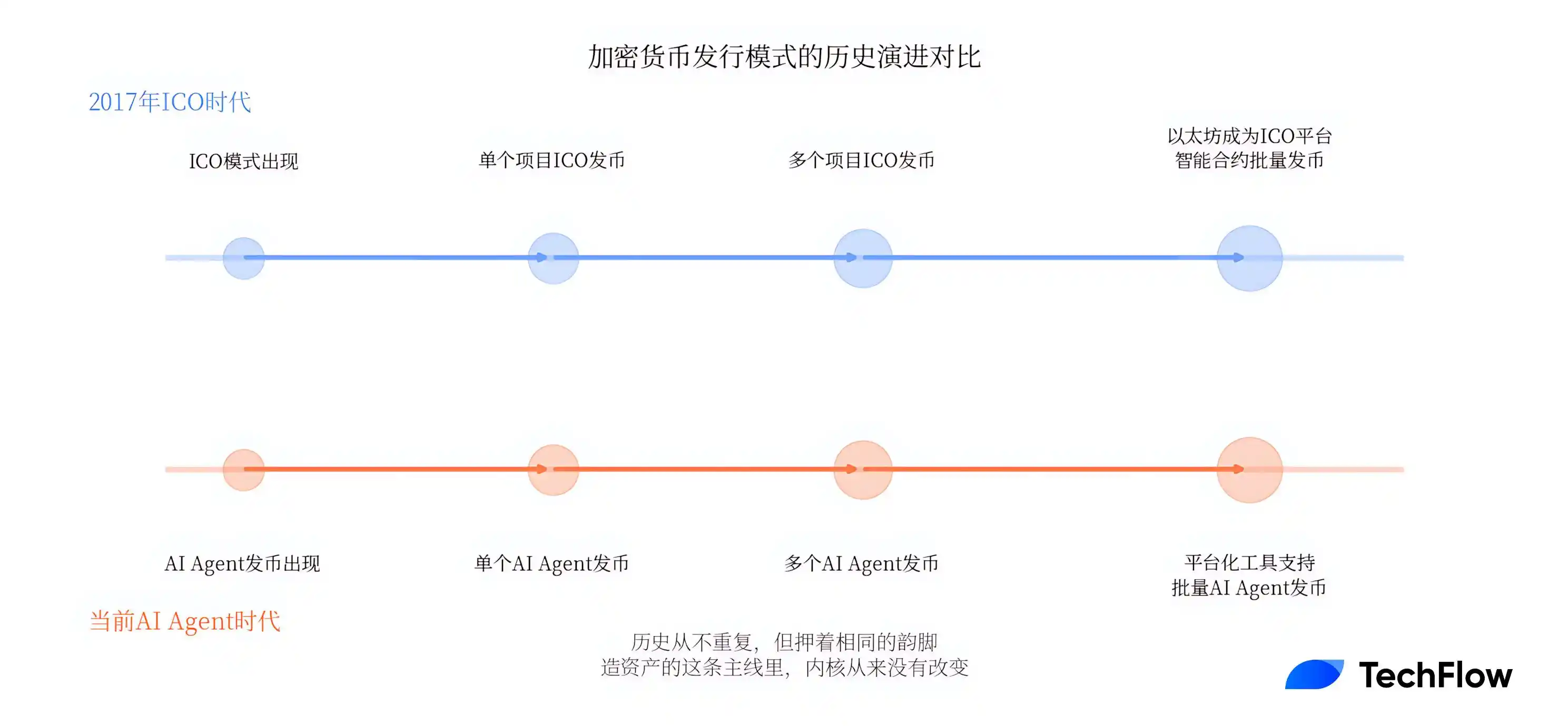 粗略来看,这其实某种程度上是应用 VS 平台的演化:从 AI Agent 能发一个币,到有一个平台/工具让更多的 AI Agent 能发币。