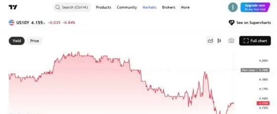 미 국채시장에서는 10년물 금리가 전 거래일보다 4.3bp 하락한 4.155%를 기록했다. 장중 한때 4.209%까지 상승하며 3개월래 고점을 경신했으나, 연준 발표 직후 반락했다. 이는 최근 4거래일 연속 상승세를 마감한 것으로, 지난 5주 간 최장 상승 흐름에 제동이 걸렸다.